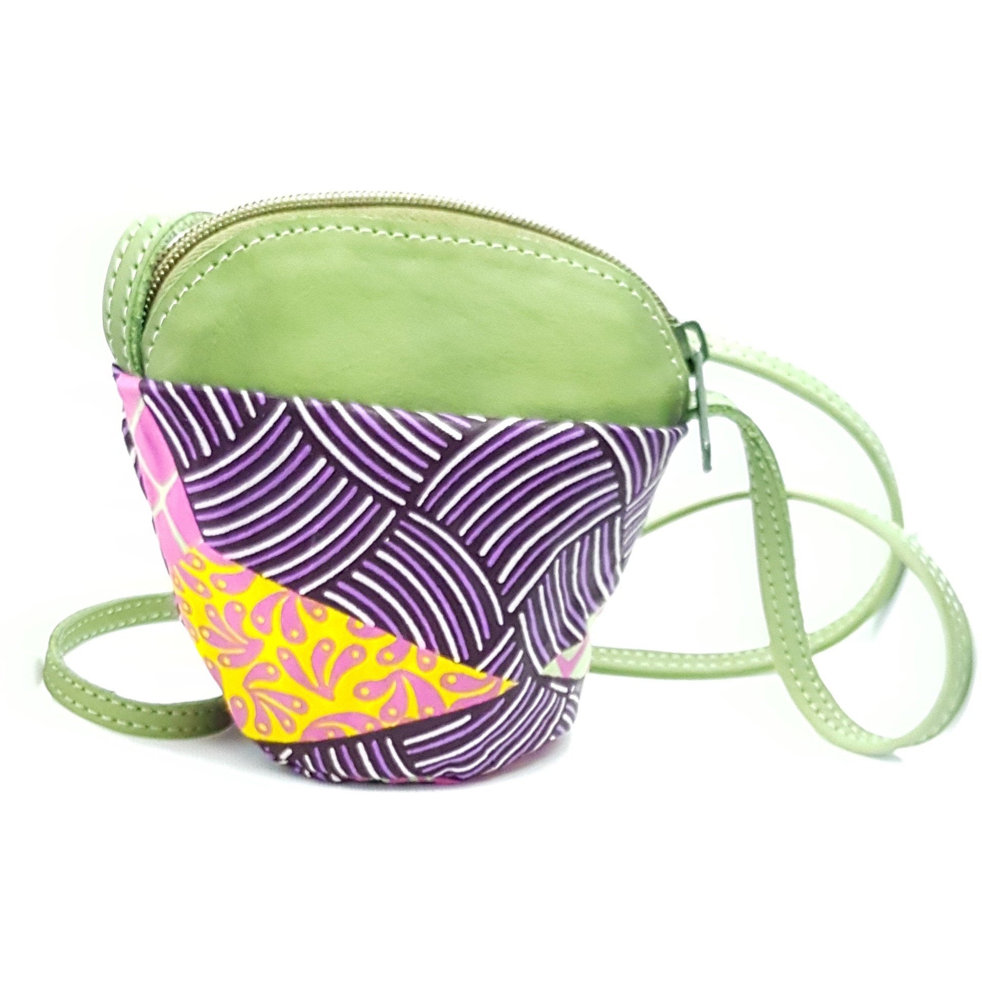 Made with Bright coloured Chitengi fabric with contrasting goat leather.