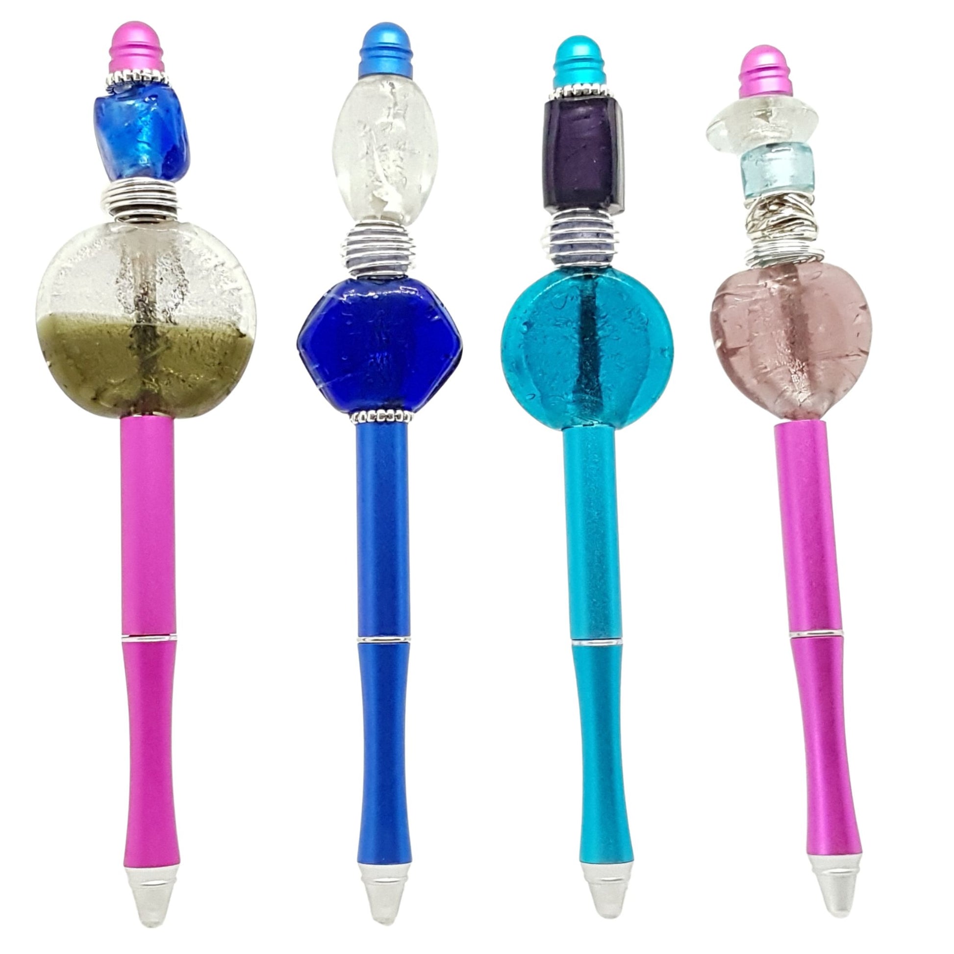 These gorgeous brushed aluminum ball point pen (twists open and closed), with lovely coordinating beads of all different styles