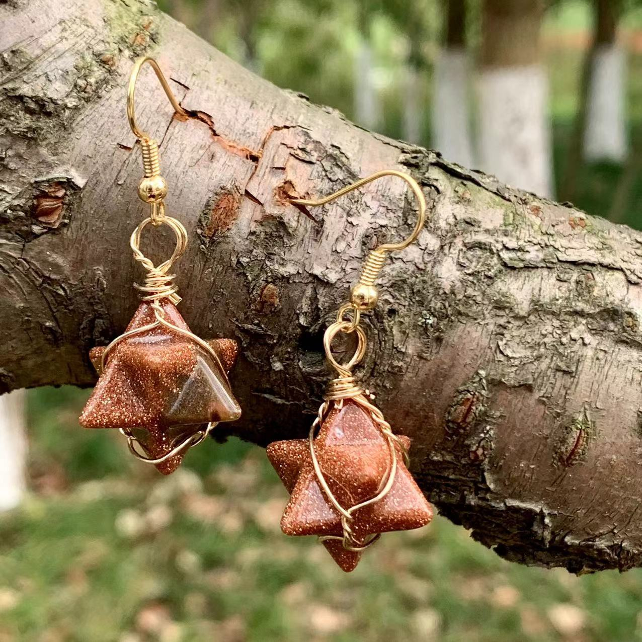 Wire wrapped star gemstone earrings